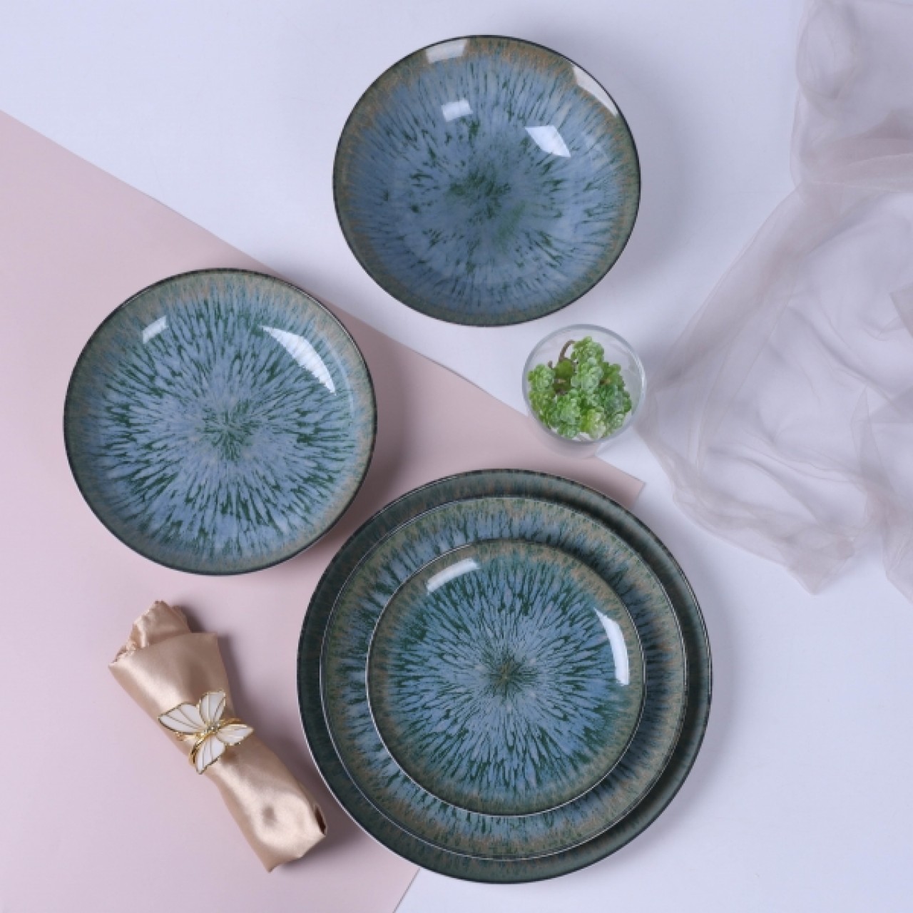 Σερβίτσιο Φαγητού Πορσελάνης, Μπλε/Πράσινο, Σετ 20Τμχ., Kansai, Cryspo Trio